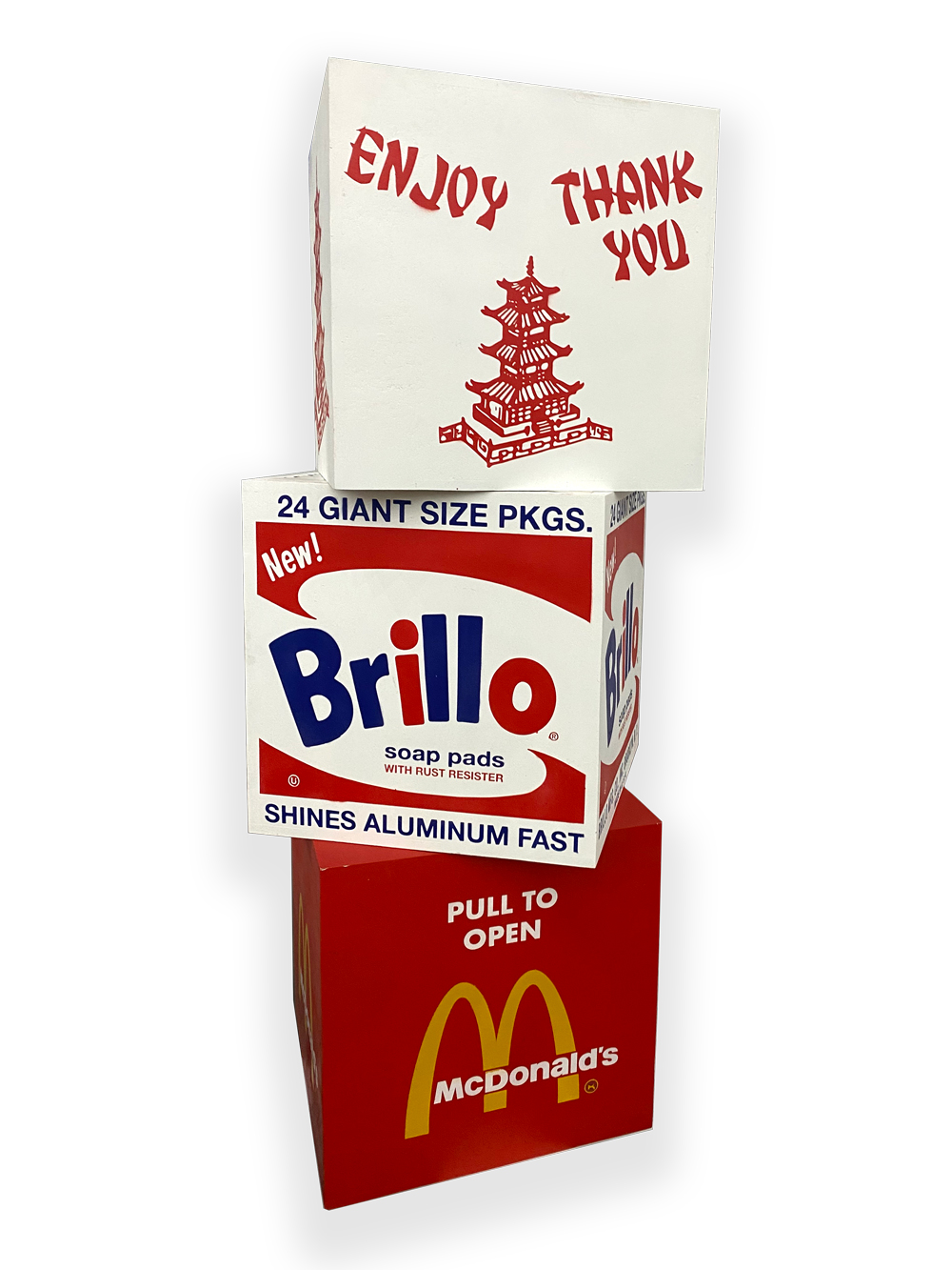 Taking inspiration from Andy Warhol's Brillo boxes, this series was an exploration on consumer goods and its iconic packaging.