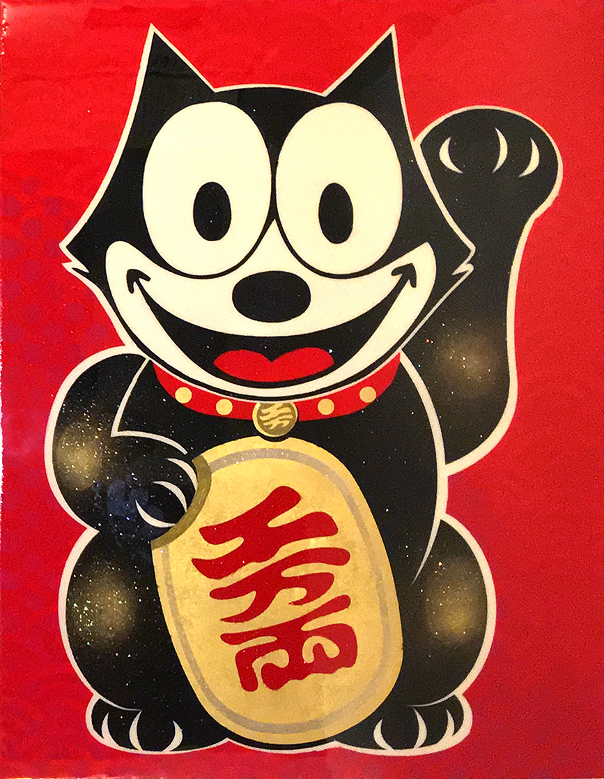 The lucky cat is a traditional Japanese motif that is believed to brings good fortune and business. I created a series of the lucky cats replaced with a iconic cat cartoon character that we all grew up loving.